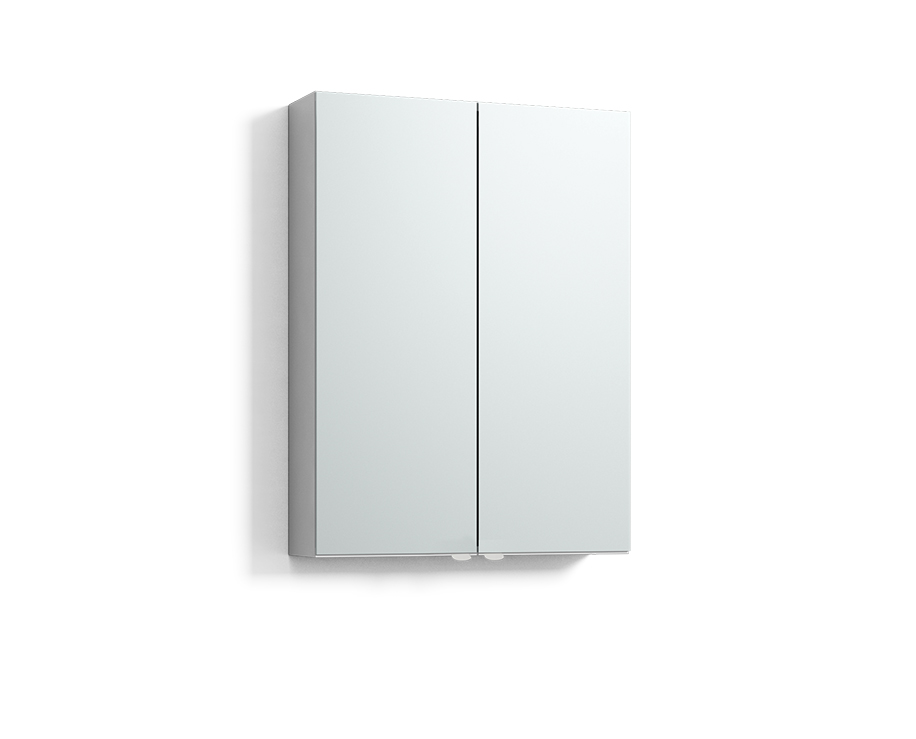 SVEDBERGS | Badrumsskåp Intro med 2 hyllor och dörr med heltäckande spegelglas på in samt utsida. Tillverkad av galvaniserad plåt som är behandlad med en zink/järn-legering. Pulverlackerad.