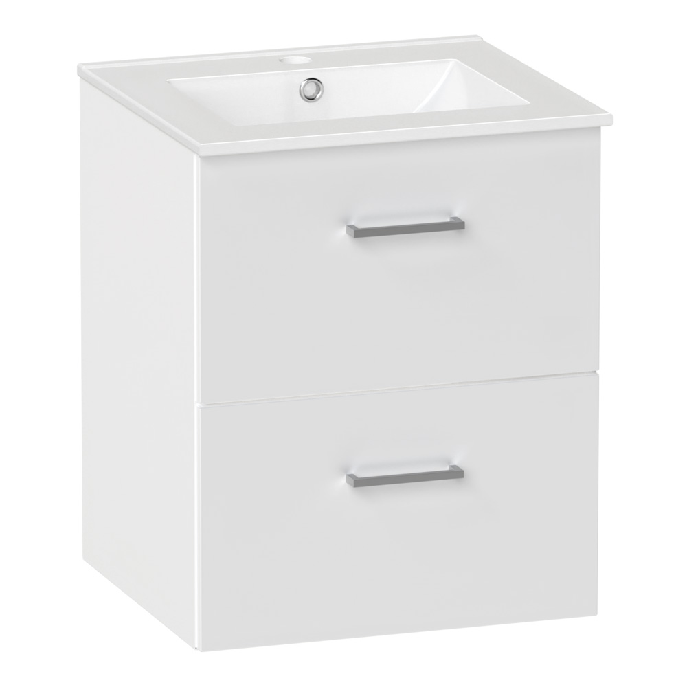 POLARIA | Kommod Noval är en stilren och tålig kommod med två lådor. Lådorna har integrerade dämpare för mjukstängning. Levereras komplett med avloppsrör och vattenlås med pop up ventil. Levereras exkl tvättställ.