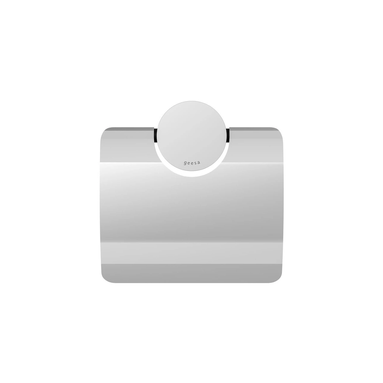 Toalettpappershållare med lock i badrumsserie Opal, bankkrom eller borstad svart. Skruvas upp på vägg men kan även limmas.