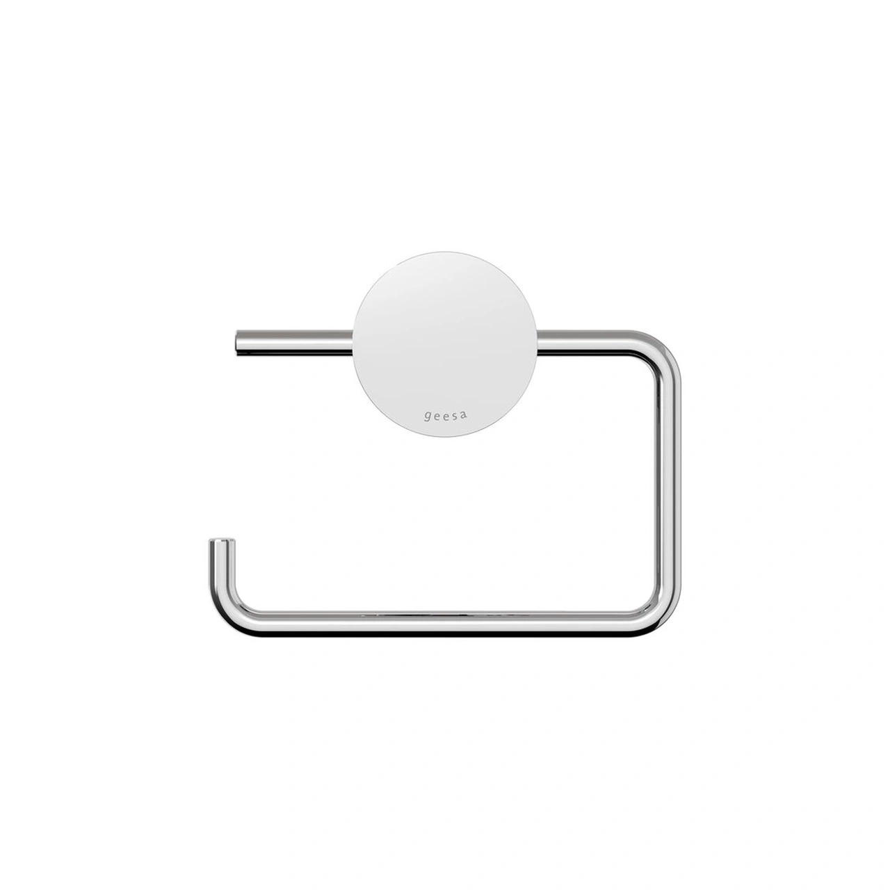 Toalettpappershållare utan lock i badrumsserie Opal, blankkrom. Skruvas upp på vägg men kan även limmas.