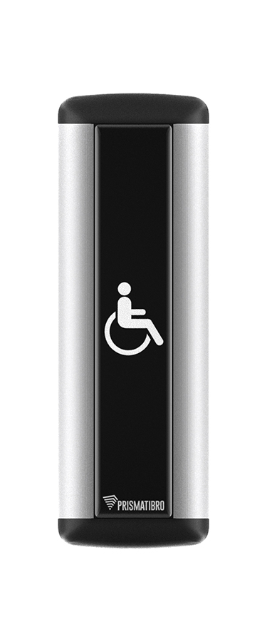 Softfrontdekal Prisma Button är avsedd för att eftermonteras på Prisma Button armbågskontakter. Det är en dekal med rullstolssymbol som täcker upp hela frontpanelen.