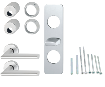 HOPPE | Ytterdörrstrycke / handtagset inklusive rosett. Utrustade med Kvick-i-Sprint snabbmontage med dubbla returfjädrar och dold fastsättning av skruvar. Avsedd för alla låshus i Skandinavisk standard. Montageskruv ingår. Innehåller:Handtag (trycke) vredskylt 2 st cylinderringar 13 mm 2 cylinderkoppar