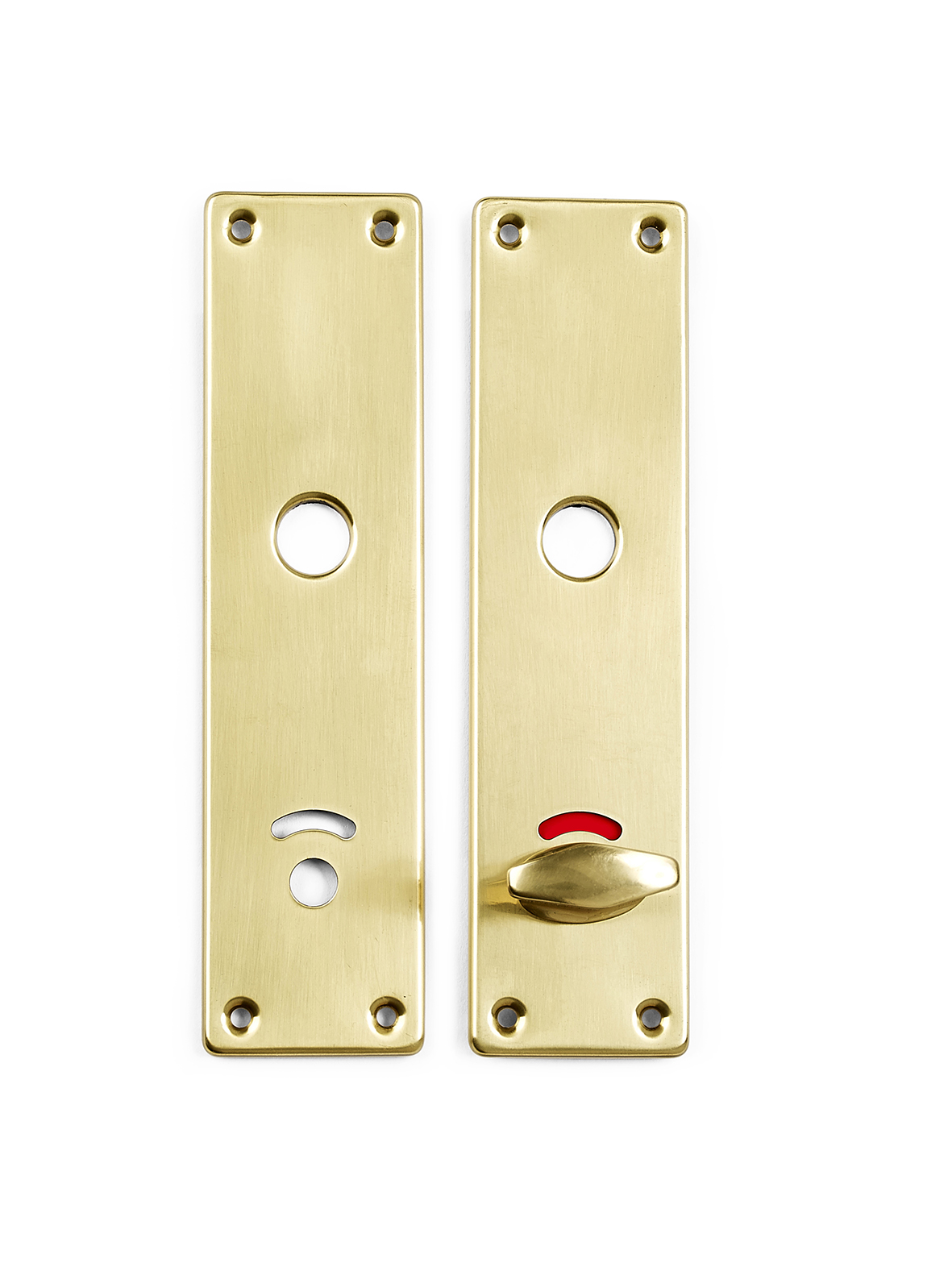 HABO | WC-långskylt med träskruvfastsättning för mellandörrslås typ 40T, 404T, 2014 samt 2020. Kombineras med trycke, som ej har rosett, för träskruvfastsättning.