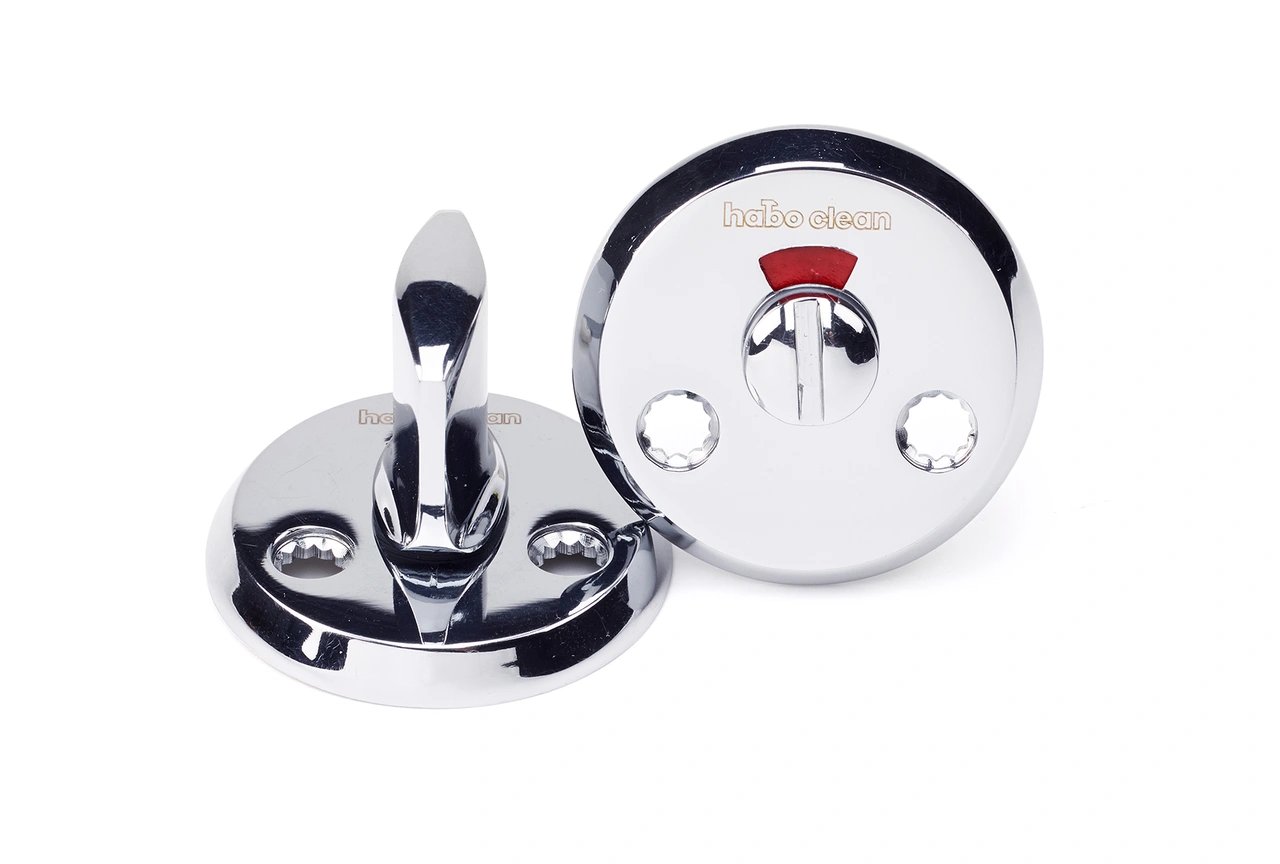 HABO | WC-behör, tillbehör till trycke Habo Clean. Habo Clean är en serie dörrbeslagning som tillverkats av bly- och nickelfri mässing med en antibakeriell ytbehandling.