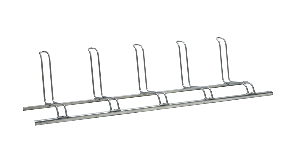 Fristående cykelställ där hjulhållare moteras på två vinkeljärn i önskat läge. Levereras omonterad. Kan erhållas med c/c avstånd 500 mm på beställning.