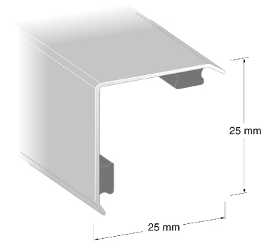Hörnskydd med elegant utformning i blankpolerat rostfritt stål. Självhäftande tejp, ej förborrade hål.