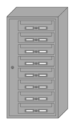 SVENSKA FASTIGHETSBOXAR | Fastighetsbox för inomhusmontering. Öppningsbar huvuddörr med centrallåsning för postutdelning och service av boxarna. Frontluckor med brevklaff som standard. Klaffen försvårar insyn och anläggande av brand. Enskilda frontluckor med två namnskyltar och ett standardcylinderlås med tre nycklar per fack. Frontluckor anpassas till önskad hängning individuellt per box. De finns om överkants, nederkants och sidohängda från både vänster och höger sida. För annan kulör än standard Silver RAL 7004, Kontakta din Byggbeslagsäljare.