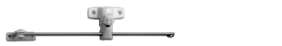 Fönsterhållare för inåtgående fönster med överfalsad båge. Ställbar. Passar såväl höger som vänster. Öppningsvinkel ca 80°. Stångfäste 12x14 mm. Bågfäste 17x50 mm.