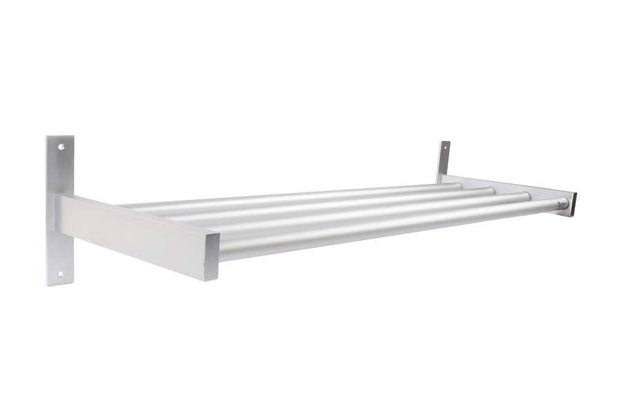 BYGGBESLAG | Lämplig för bland annat bostäder och kontorslokaler. Konsol i aluminium, 20x50 mm profil på 40 mm väggplatta och hylla i aluminiumrör 25 mm. I serien ingår även klädhylla och krokstav. Bild visar endast artikeln i ett utförande. Se information under respektive artikel för antal krok och konsoler.