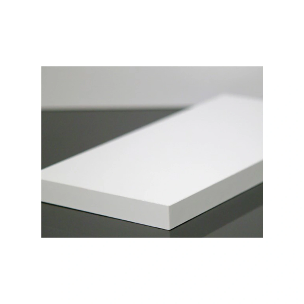 Hyllplan av 19 mm spånskiva med vit laminat på båda sidor och vit kantlist runt om.