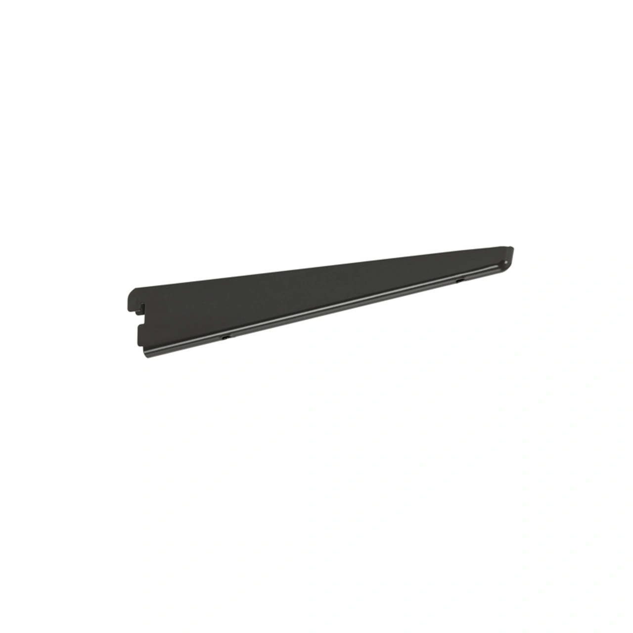 ELFA | Konsol för användning med fasta hyllor. Haka helt enkelt fast konsolen i en väggskena eller hängskena och säkra sedan hyllan med stift för hyllplan, konsolskruvar eller ett skarvbeslag för hyllplan. Se till att hyllan inte överskrider konsoldjupet med mer än 3 cm för optimal stabilitet.