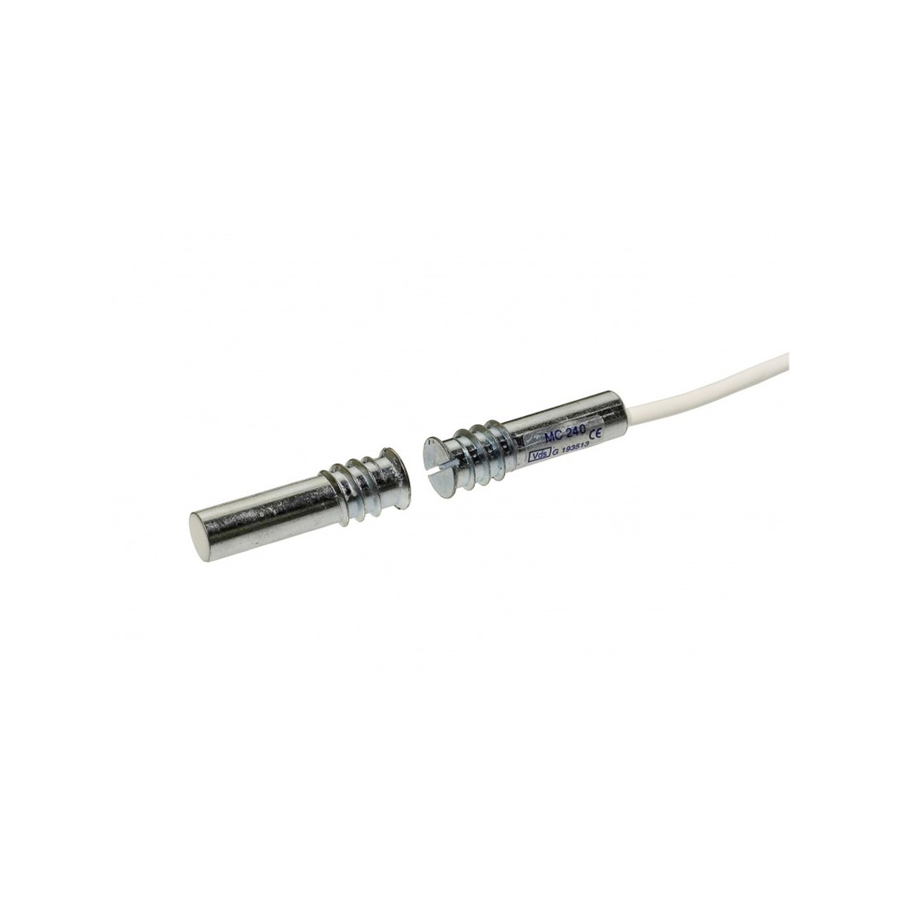 ALARMTECH | Magnetkontakt MC240 med NC funktion för infällt montage. Kan användas både i larm och passersystem för bevakning av t.ex. dörrar, fönster, portar och grindar mot obehörig öppning. Både kontakt- och magnetdelen är i metall och utformade som en skruv med gängor, vilket möjliggör enkel montering i trä eller plast. Finns i kabellängderna 2, 6 och 10 meter.