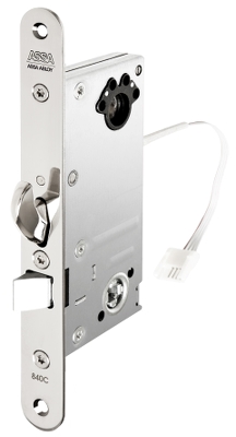 ASSA ABLOY | Motorlås med låskista, styrenhet DAC564, anslutningskabel EA226, säkerhetsslutbleck med inbyggd magnet samt karmöverföring EA281. Motordrivet hakregellås anpassat för dörrar med ASSA modulurtag. Det passar bra som natt- och säkerhetslåsning i dörrar med höga säkerhetskrav inom handel, kontor och industri. Daglåsta eller högfrekventa dörrar bör kompletteras med ett daglås. ASSA 840C/841C är Hi-O-enheter som ansluts till en DAC564 alternativt DAC530. Öppningshastighet ca 0,2 sekunder. LED och brytare för initiering/status mot DAC. Låset kan alltid öppnas med nyckel/vred. Inbyggd dold dörrlägesgivare (magnet i slutbleck). Kan kombineras med andra Hi-O-enheter utan styrenhet, t. ex. daglås, dörrautomatik och kortläsare