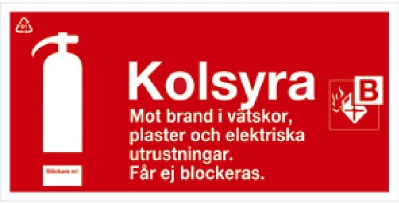 Tilläggsskylt till brandsläckarskylt för kolsyresläckare.