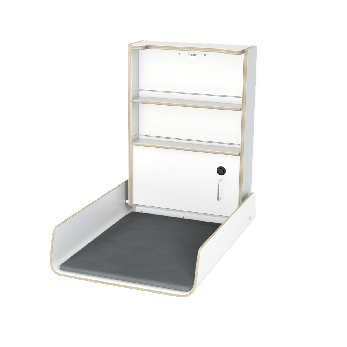 Endra, ett väggmonterat skötbord avsett för offentlig miljö. Skötbordet är manuellt höj- och sänkbart. Arbetshöjd går att variera med 300 mm. Rekommendation är att montera skötbordet så att arbetshöjd är 700-1000mm. Madrass i grå cellplast som tål spritning och inte suger åt sig vätska. Insidan är alltid i vit. Maxbelastning 25 kg