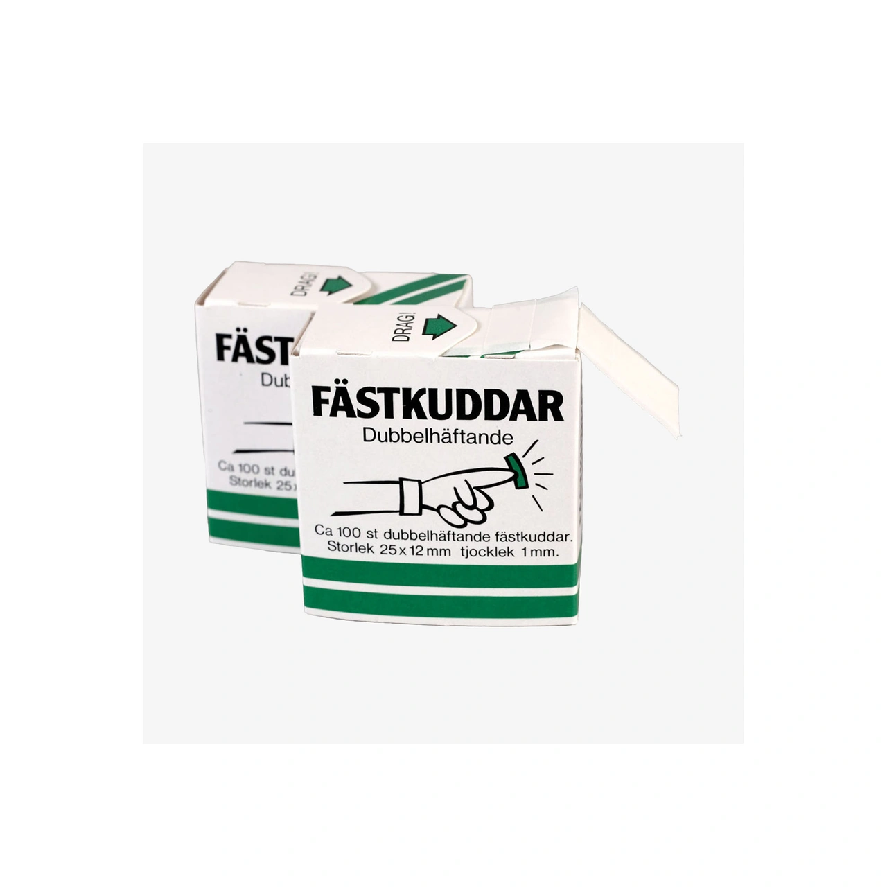 Dubbelhäftande fästkuddar med god häftförmåga som är lämpliga för montering av t.ex. affischer, krokar eller lättare skyltar, 100 st per kartong.