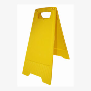 Golvskylt (trottorapratare) i 100% formgjuten polypropen som är bredadre nertill för extra stabilitet. Tunn när ihopfälld och ergonomiskt handtag för lätt transport. Välj passande skylt med självhäftande baksida. Levereras utan motiv och text.