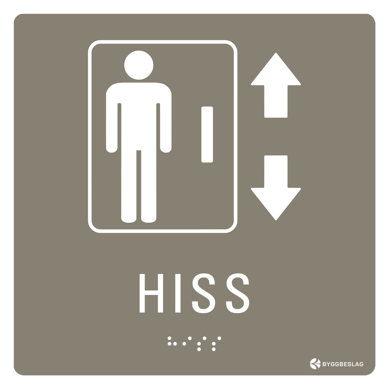 SKYLT TAKTIL HISS 150X150 MM TEJP GRÅ MED VIT TEXT