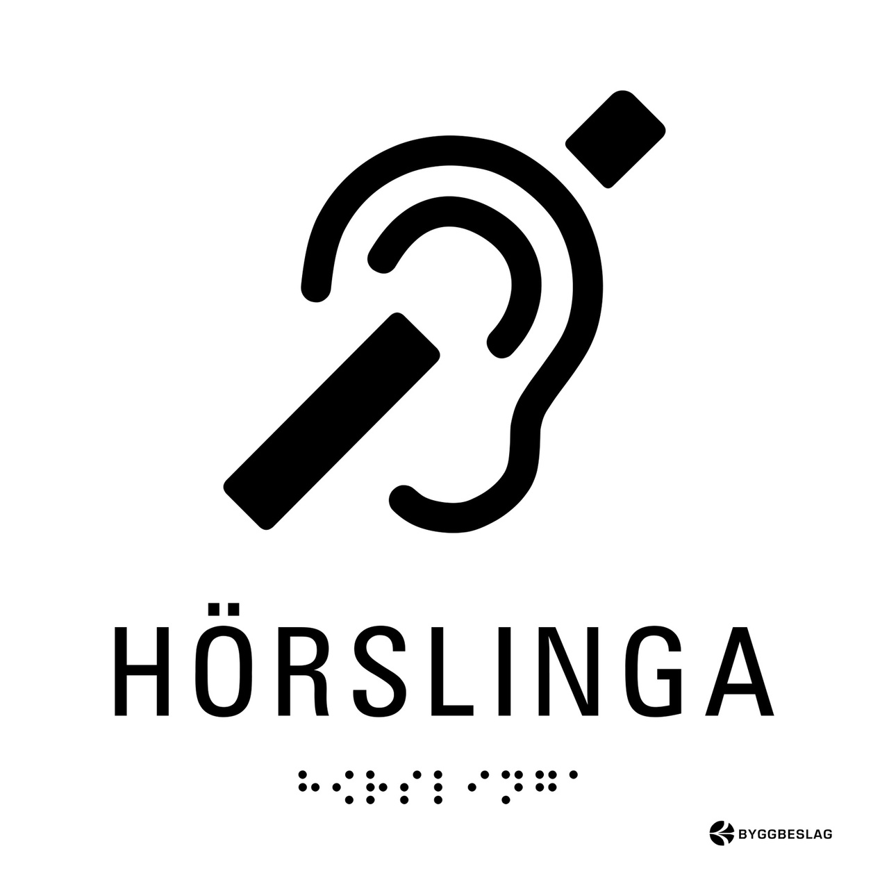 SKYLT TAKTIL HÖRSLINGA 150X150 HÅL VIT MED SVART TEXT