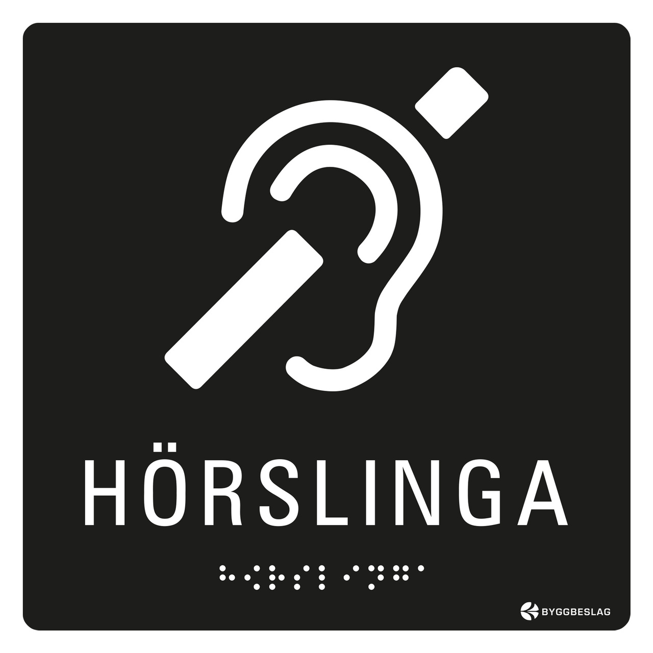 SKYLT TAKTIL HÖRSLINGA 150X150 TEJP SVART MED VIT TEXT
