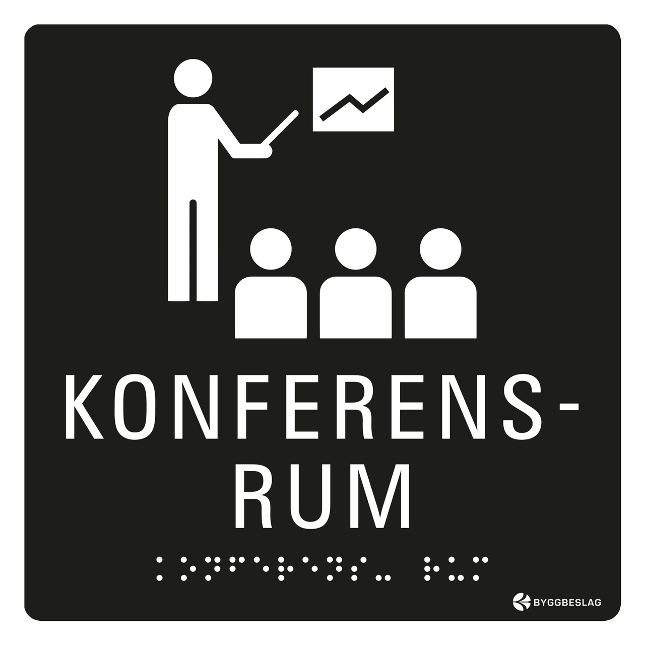 SKYLT TAKTIL KONFERENSRUM 150X150 MM HÅL SVART MED VIT TEXT