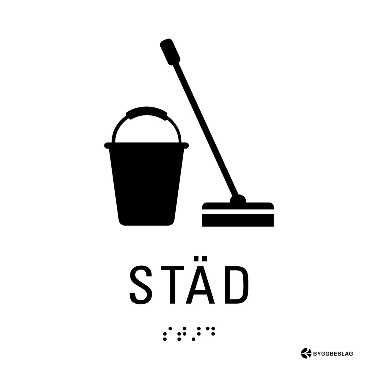 SKYLT TAKTIL STÄD 150X150 HÅL VIT MED SVART TEXT
