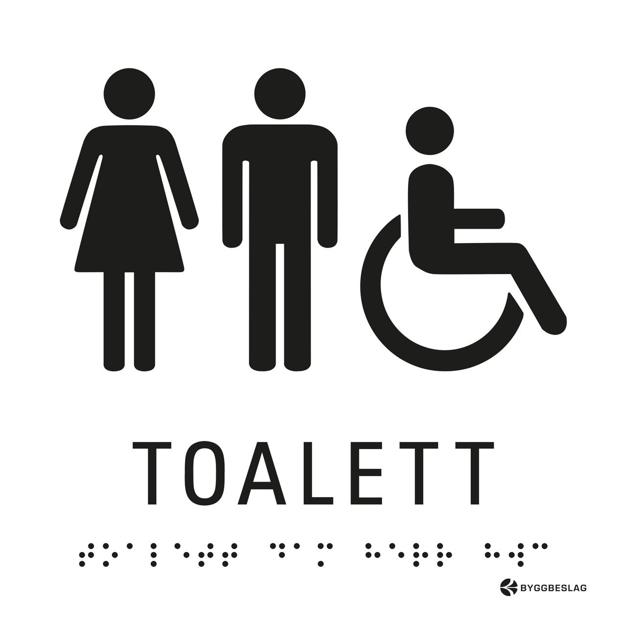 Taktil skylt för synskadade. Skylten har ett piktogram kombinerat med text. Symbolerna är designade för optimal läsbarhet. Texten är skriven med upphöjd text med kompletterande punktskrift. Dubbelhäftande tejp för flexibel placering.