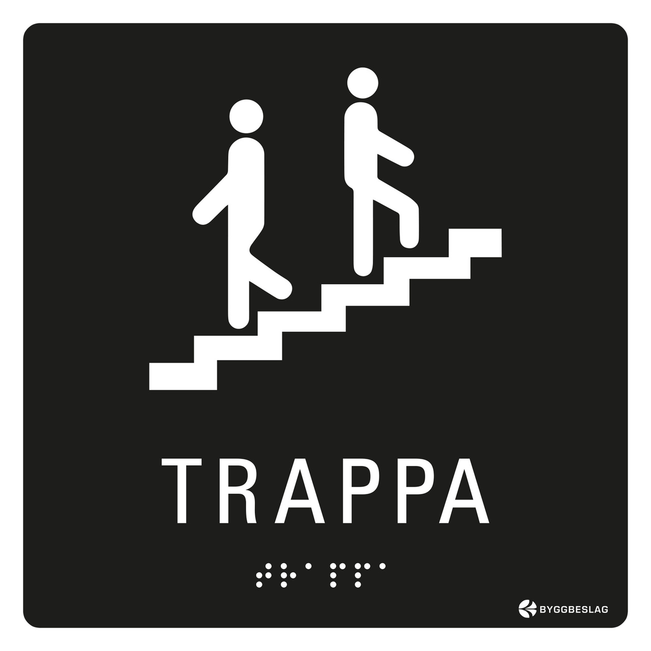 SKYLT TAKTIL TRAPPA 150X150 HÅL SVART MED VIT TEXT