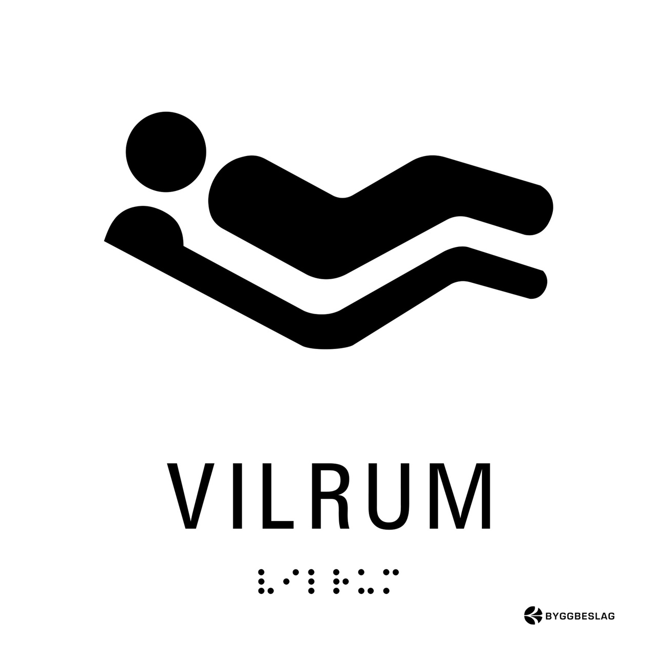SKYLT TAKTIL VILRUM 150X150 MM TEJP VIT MED SVART TEXT