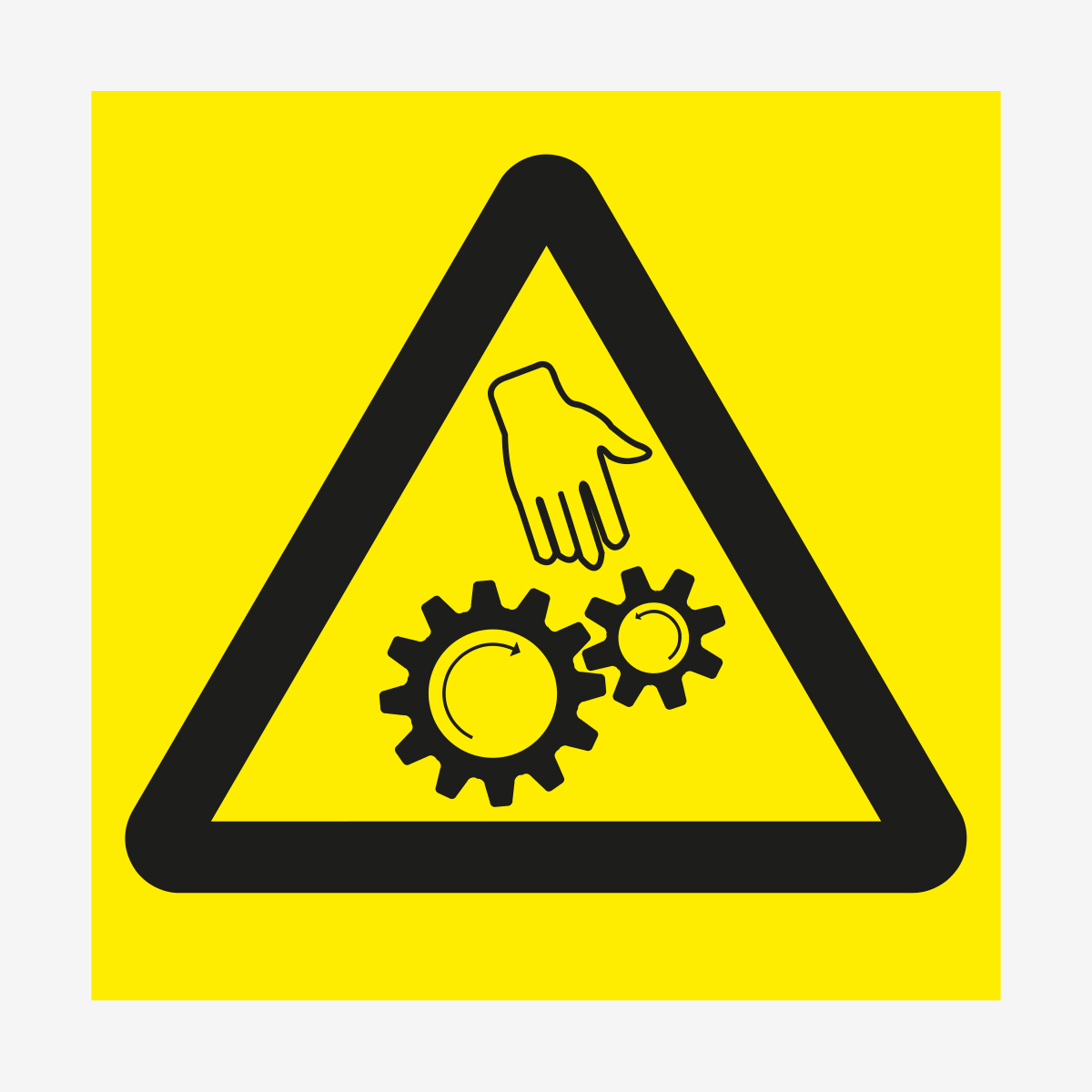 Varningsskylt i Apet plast som tydlig informerar om klämrisk. Skylten är utformad enligt myndighetskrav för varningsskyltar (AFS 2020:1). En skylt som är slitstark med lång hållbarhet. Gul bottenfärg och symbol i svart. Skylten levereras utan hål eller tejp.